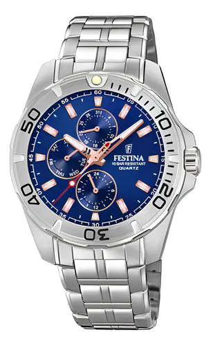El Festina Multifunction F20445/6 es un reloj de pulsera para hombre de la colección Timeless, que destaca por su diseño funcional y versátil. Su estética combina la elegancia del acero inoxidable plateado con una esfera de un profundo tono azul marino, ofreciendo un estilo moderno y sofisticado. Como reloj multifunción, proporciona información adicional de tiempo (día de la semana, día del mes y formato 24 horas), lo que lo hace un accesorio práctico y con estilo para el uso diario o para ocasiones de negocios.