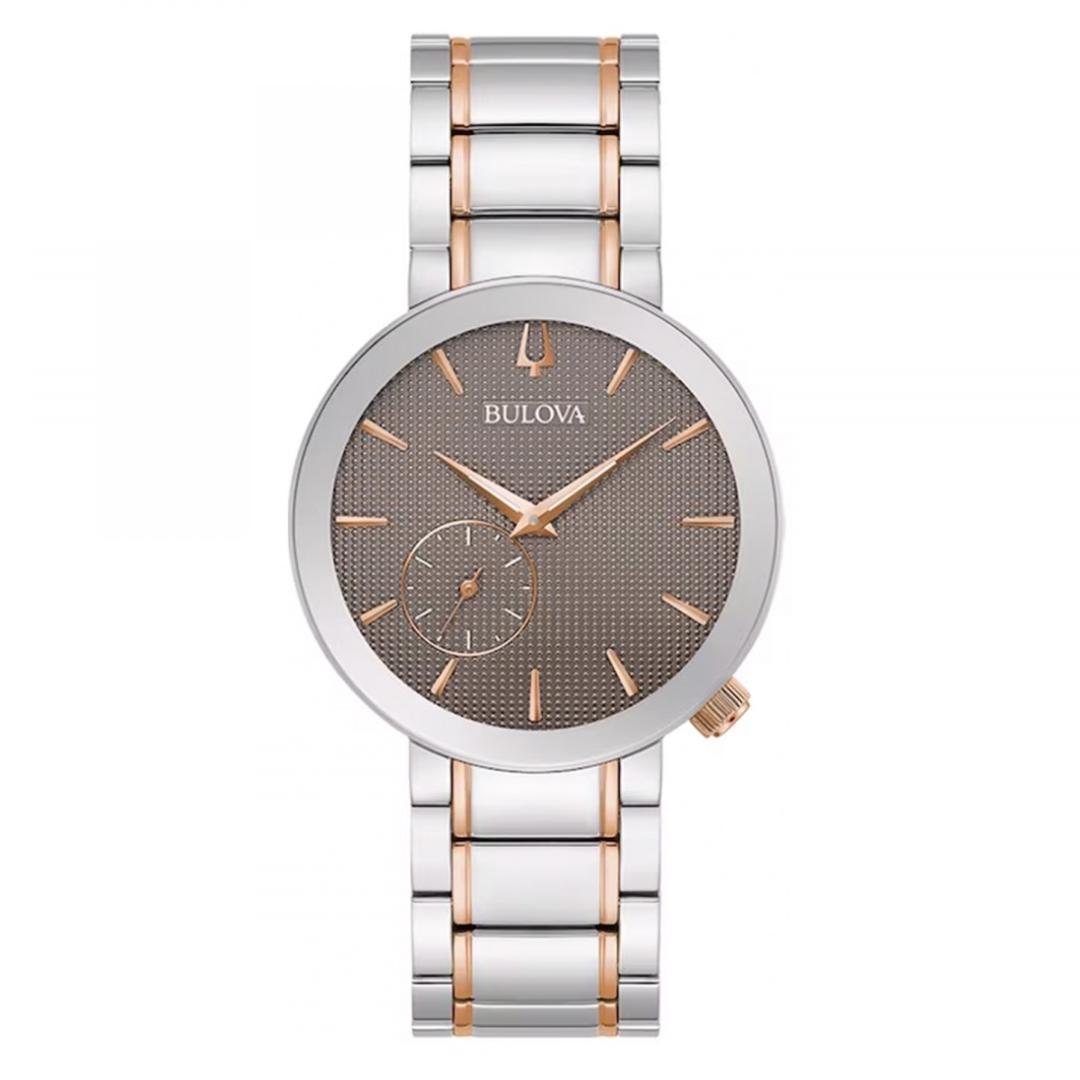 Este nuevo reloj Bulova para damas se suma a la Colección Latin GRAMMY® y continúa la celebración de la marca de la entrega de premios y los artistas extraordinarios que la hacen posible. Un cristal de zafiro metalizado curvado de borde a borde crea una caja de 35 mm excepcionalmente moderna, que cuenta con acero inoxidable en tono plateado y una corona en tono oro rosa. La esfera texturizada está acentuada con manecillas y marcadores en tono oro rosa y una subesfera de segundos. En la parte posterior del reloj, la caja con tapa atornillada está estampada con el logotipo de Latin GRAMMY®. El reloj se combina perfectamente con un brazalete de dos tonos a juego con un cierre desplegable. Lleve el espíritu de los premios Latin GRAMMY® y sus increíbles artistas con este nuevo reloj Bulova para damas.