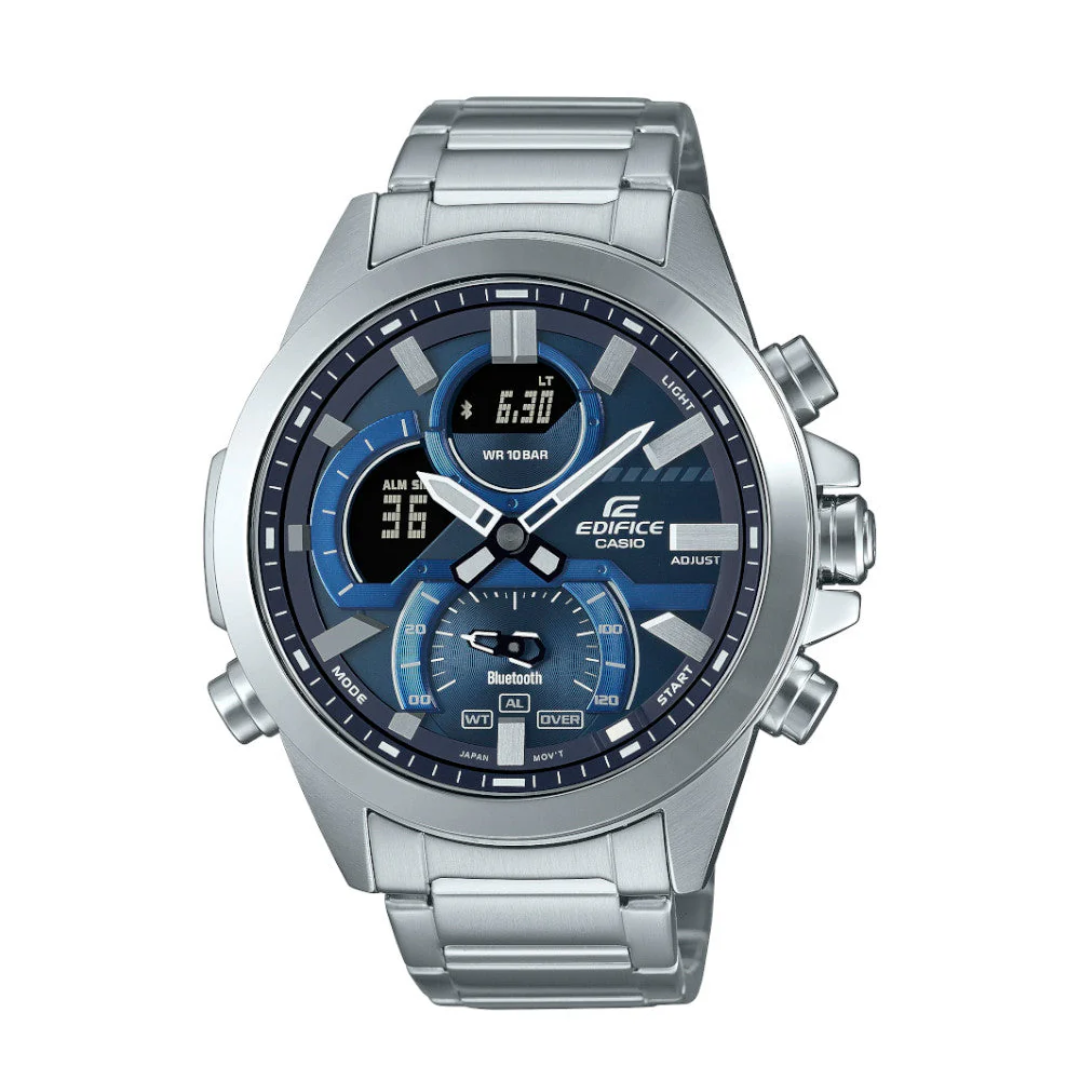 | Color de la esfera | Azul con marcadores plateados y pantalla digital. |