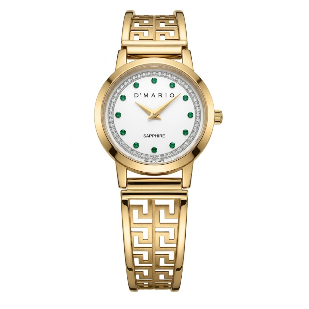 | Material principal de la caja | Acero inoxidable con acabados en oro de 14 micrones. |