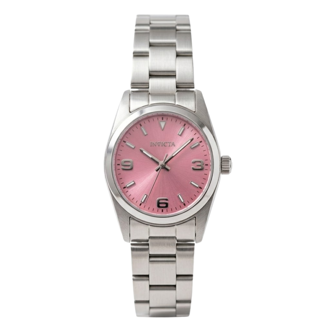 El Invicta 69190 es una expresión de serenidad y estilo dentro de la colección Celestial. Este modelo se distingue por su estética equilibrada, presentando una caja de acero inoxidable en tono plateado natural que resalta una esfera en un delicado tono rosado, evocando los colores de un amanecer cósmico. Su diseño compacto de 28 mm lo hace ideal para muñecas femeninas que buscan distinción sin excesos. Al igual que otros modelos de la línea, cuenta con cristal Flame Fusion para una protección superior y un brazalete de eslabones de acero inoxidable que garantiza durabilidad y un acabado pulido impecable.