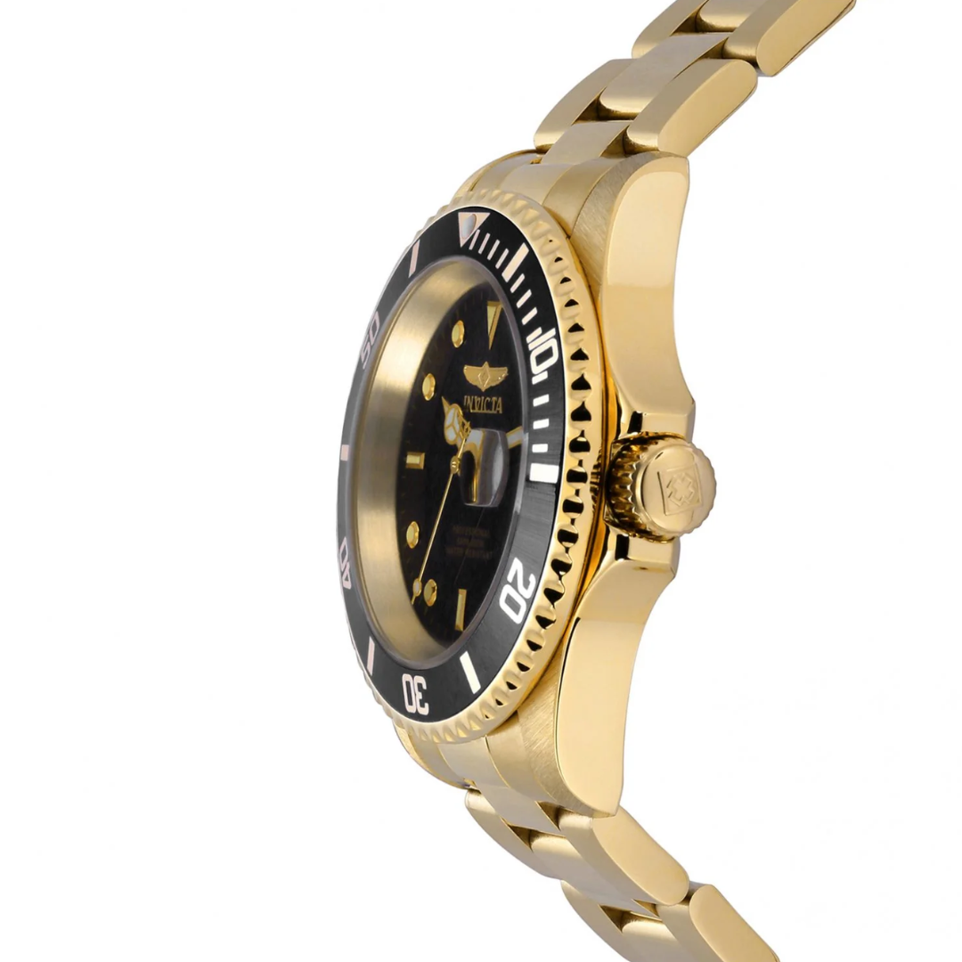 El Invicta Pro Diver 26975 es una interpretación refinada y clásica del reloj de buceo tradicional. Este modelo destaca por su construcción robusta en acero inoxidable con un acabado cepillado y pulido que le otorga una presencia versátil. Su esfera de color azul profundo con acabado sunray se complementa con un bisel giratorio unidireccional a juego, creando una estética náutica cohesiva. Con un tamaño de caja de 40 mm, es ideal para quienes buscan un perfil más contenido y cómodo sin sacrificar la durabilidad y el estilo deportivo característico de la línea Pro Diver.