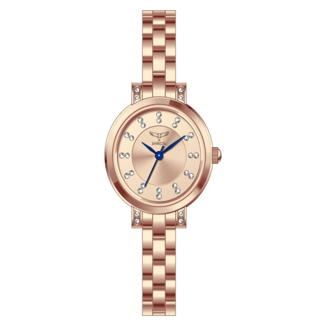 El Invicta 69070 es una pieza que destila lujo y sofisticación en un formato compacto y femenino. Este modelo destaca por su acabado íntegramente dorado en acero inoxidable, que enmarca una esfera blanca con un sutil patrón de rayos de sol (sunray). Con una caja de 30 mm, este reloj de la colección Wildflower está diseñado para la mujer que busca un accesorio que funcione tanto como un instrumento de precisión como una joya refinada. Su diseño atemporal y brillante lo convierte en el complemento ideal para elevar cualquier atuendo, aportando un toque de distinción clásica al uso diario o eventos especiales.