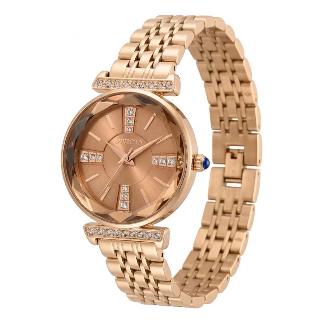 El Invicta 69420 es una expresión de sofisticación y frescura dentro de la colección Wildflower. Este modelo destaca por su luminosa caja de acero inoxidable con un acabado en oro de 18k, que resalta una esfera en tono champán/oro con una textura sutil. Su diseño de 30 mm lo posiciona como un accesorio delicado, ideal para quienes buscan una pieza de joyería funcional que no sature la muñeca. Equipado con cristal Flame Fusion para una durabilidad excepcional y un brazalete de eslabones pulidos, este reloj es la elección perfecta para la mujer que desea un estilo clásico y brillante que complemente tanto su vestuario profesional como sus atuendos de gala.