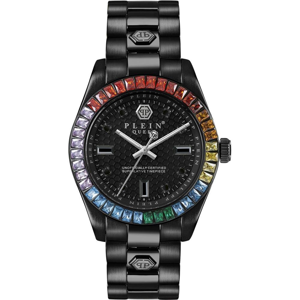 El Philipp Plein PWDAA0921, de la icónica y atrevida colección The $keleton, es una obra maestra de ingeniería y diseño de lujo. Este reloj presenta una caja robusta de acero inoxidable en tono plateado con un acabado pulido. Su característica principal es la esfera esqueletizada transparente que revela el intrincado movimiento automático en su interior, un sello distintivo de la opulencia y la provocación de la marca. El bisel está adornado con el nombre de la marca grabado, y la correa de silicona negra de alta calidad ofrece un contraste deportivo y comodidad.