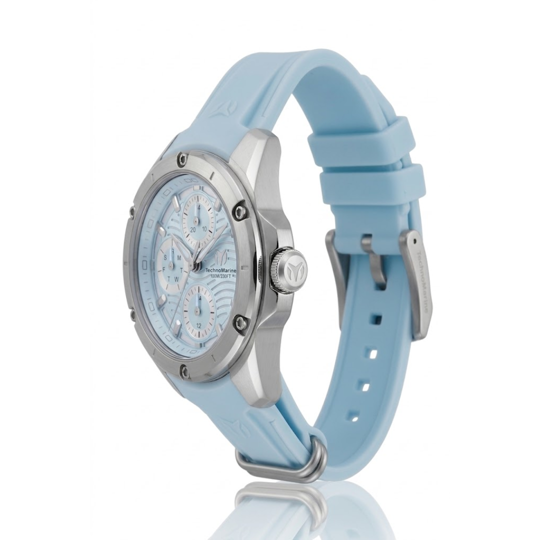 El TechnoMarine TM-325004 es una pieza central de la colección Oceanico, diseñada para capturar la esencia de la libertad marina con un toque de elegancia deportiva. Este modelo se distingue por su esfera en un vibrante color azul, protegida por una caja de acero inoxidable de 36 mm que ofrece un equilibrio perfecto entre delicadeza y resistencia. Su correa de silicona en tono azul claro no solo proporciona una comodidad excepcional para el uso diario, sino que refuerza su identidad náutica. Es el accesorio ideal para la mujer moderna que valora la precisión japonesa y un diseño que destaca tanto en entornos casuales como en actividades al aire libre.