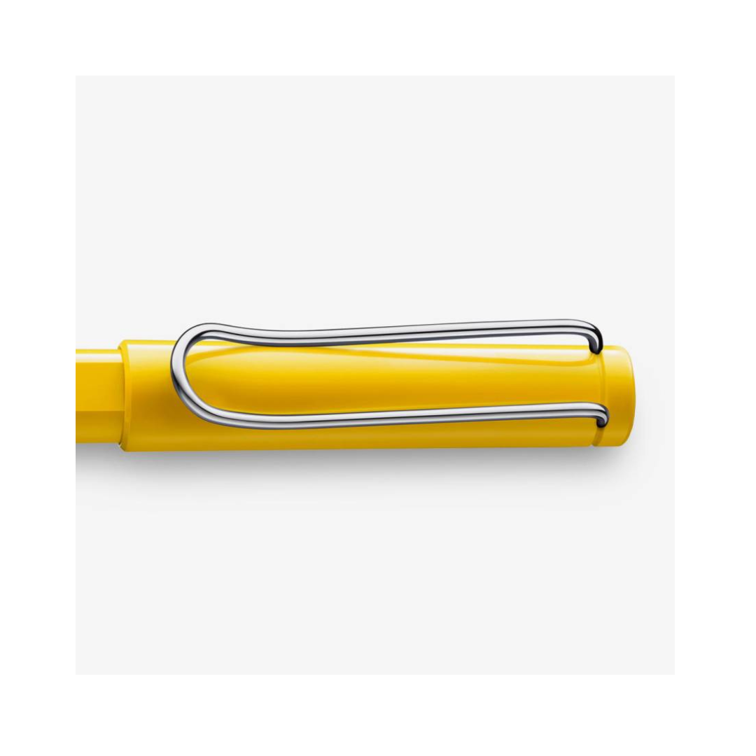 El Rollerball Lamy Safari Amarillo es una declaración de energía y visibilidad en el escritorio. Fabricado en plástico ABS brillante de alta durabilidad, este instrumento es famoso por su robustez y su diseño ergonómico de vanguardia. La zona de agarre con muescas guía intuitivamente los dedos hacia una posición de escritura óptima, minimizando el esfuerzo. Su clip metálico cromado de gran tamaño es una pieza de ingeniería funcional que asegura la pluma con firmeza extrema, combinando la vivacidad del color con la fiabilidad alemana.
