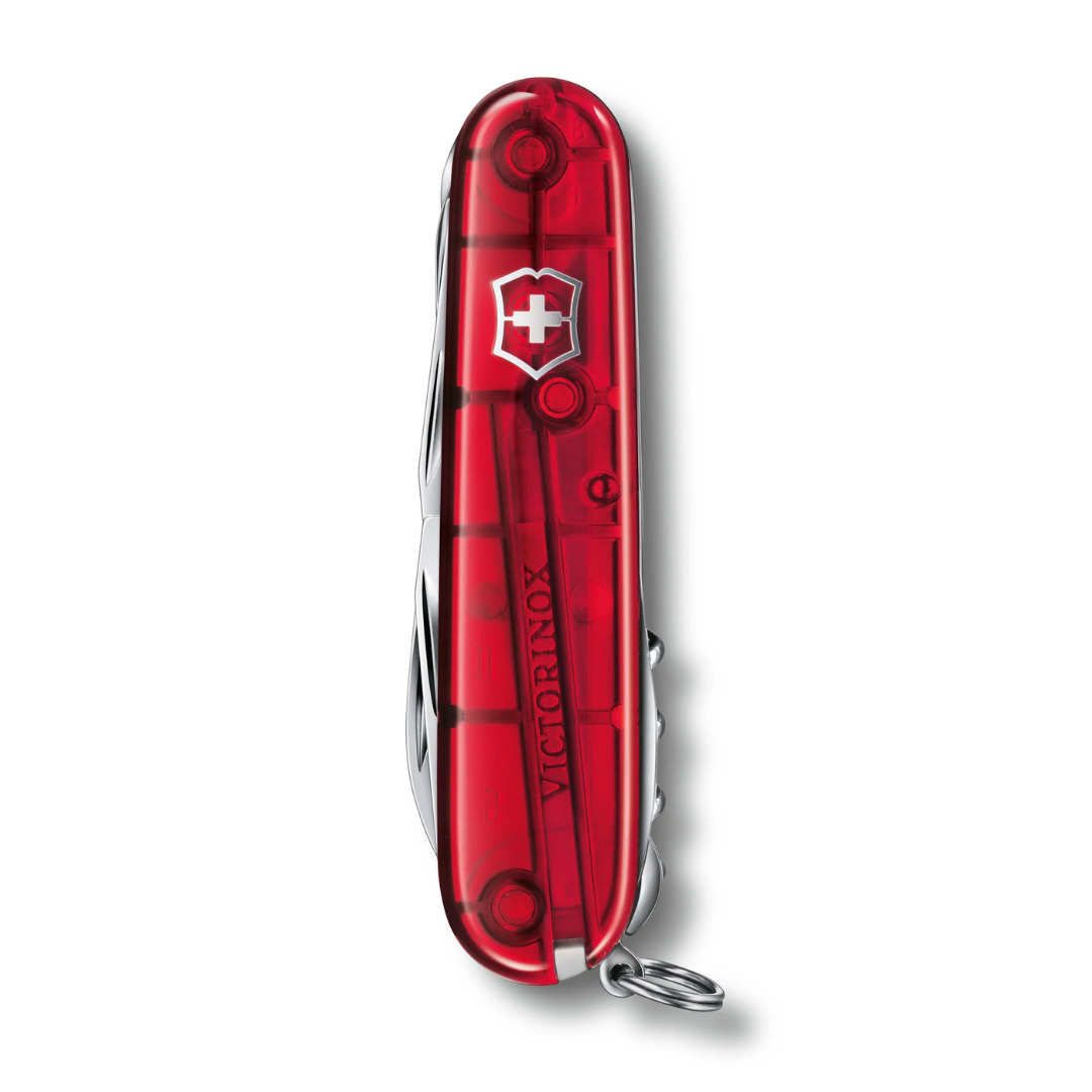 | Funciones principales (15 funciones) | Hoja grande, hoja pequeña, serrucho para madera, tijeras, abrelatas, destornillador 3 mm, destapador, destornillador 6 mm, pelacables, punzón escariador, sacacorchos, gancho multiusos, pinzas, palillo de dientes y anilla. |